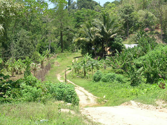 bien d’autres cultures locales (café, bananes, ananas, mangues, papayes et autres fruits exotiques). Nous continuons le parcours le long d’un joli petit lac avant d’atteindre le poste frontière
