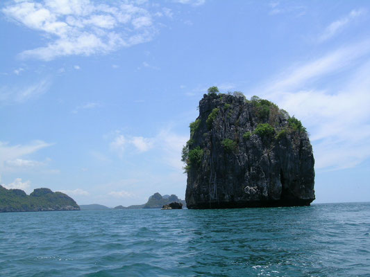 Pour atteindre les îlots de Lan Pet et Lan Khaï situés au large de la superbe baie de Pathiu, le voyage d’environ une heure s’effectue en speed boat. L’eau, le plus souvent cristalline, offre un
